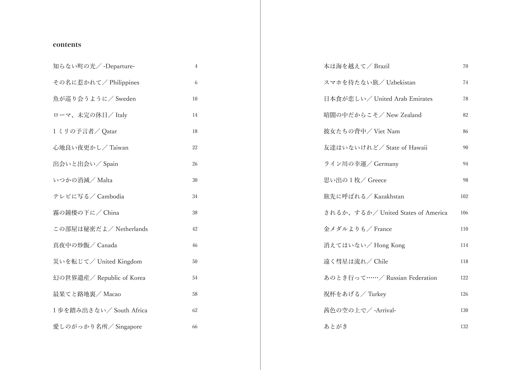 収録したのは、31の国と地域への旅を描いた、33編の書き下ろしエッセイ。その物語に、113枚の写真を重ね合わせ、異国の香りがふんわり漂う1冊に仕上げました!